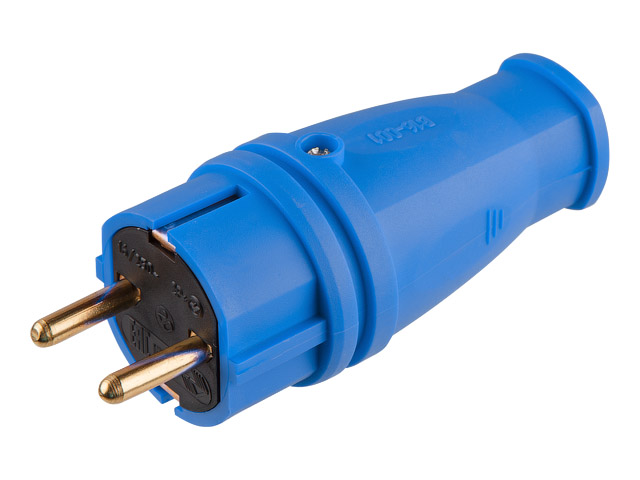 Вилка (с/з, 16А, 250В) каучук, синяя Юпитер