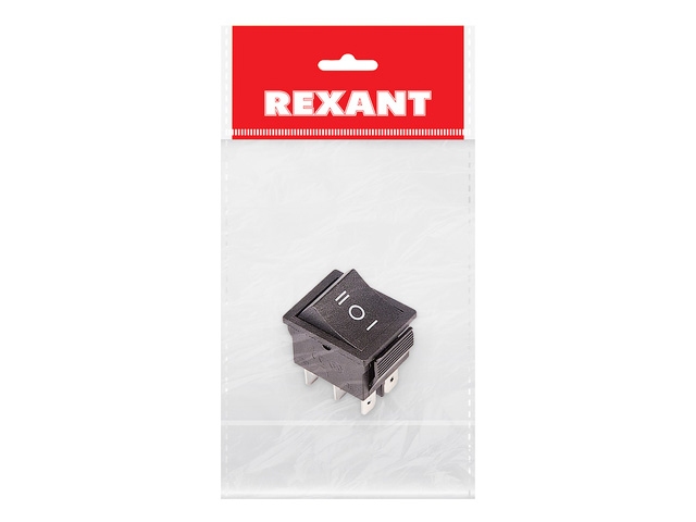 Выключатель клавишный 250V 15А (6с) ON-OFF-ON (RWB-508, SC-767) черный с нейтралью (инд.уп.) REXANT