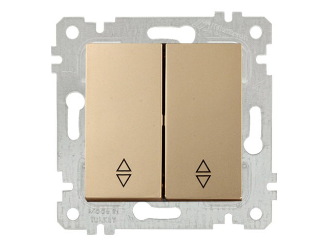 Выключатель проходной 2-клав. (скрытый, без рамки, пруж. зажим) золото, RITA, MUTLUSAN