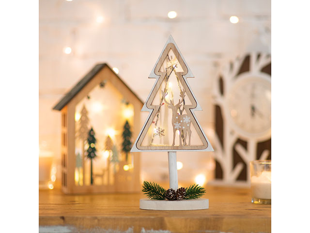Деревянная фигурка с подсветкой «Елка на подставке» 14,5х5х30 см