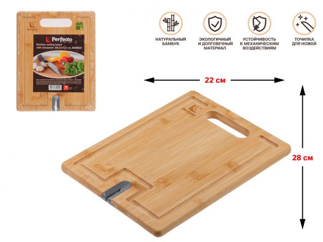 Доска разделочная из бамбука с точилкой для ножей, 28х22х1.5 см, BAMBOO, PERFECTO LINEA