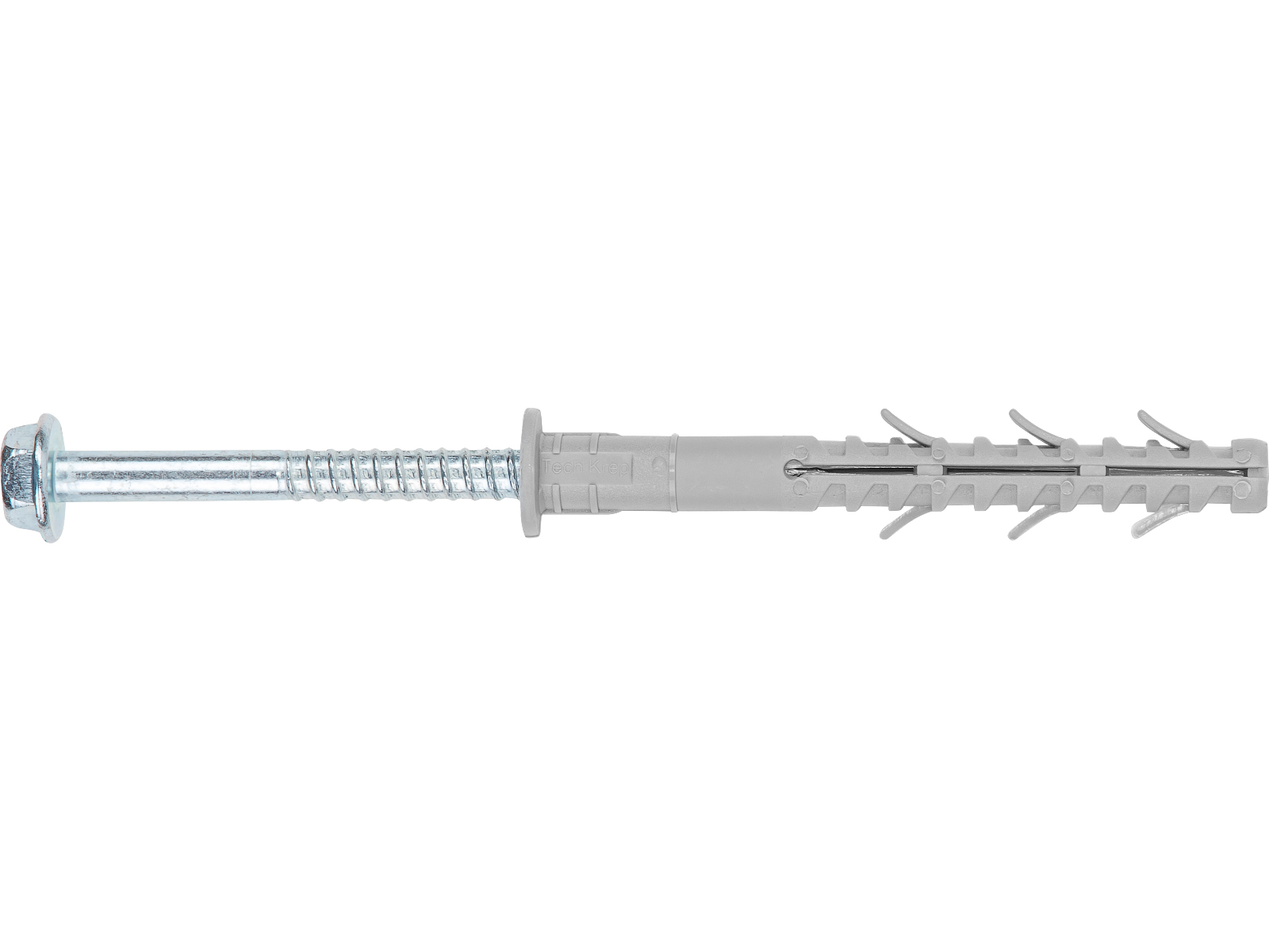 Рамный дюбель предназначен для сквозного монтажа деревянных реек, бруса, кровельных и фасадных конструкций, оконных рам, дверных косяков и т.д. к основаниям из бетона, полнотелого и щелевого кирпича, пенобетна, гипсовых плит и др. Дюбель комплектуется специальным шурупом с пресшайбой из оцинкованной стали прочностью 8.8
