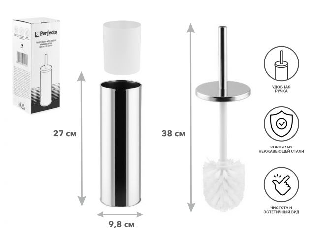 Материал, из которого изготовлен ершик. Для туалетных комнат со средней и большой проходимостью рекомендуем выбирать металлические ершики, а вот для мест с малой посещаемостью подойдет и пластиковый (Ерш с подставкой Solid (Солид), снежно-белый, PERFECTO LINEA арт.43-196010).