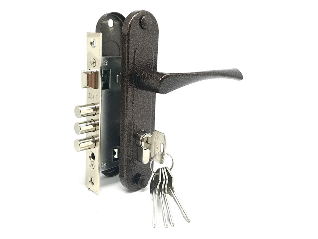Гальваническое покрытие. Межосевое расстояние 61,5 мм, Удаление ключевого отверстия 40 мм. По посадочным размерам совпадает с замками Апекс 10 серии, Аллюр, Фуаро и другими замками китайского производства с межосевым расстоянием 61,5 мм.