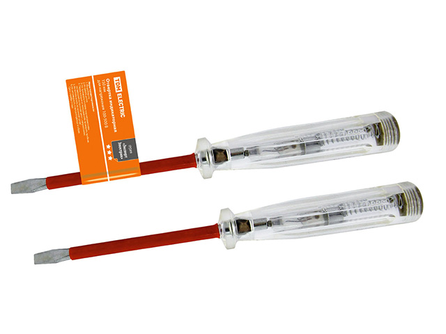 Рукоятка и покрытие стержня отвертки-пробника изготовлены из изоляционного пластика.