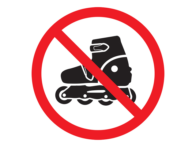 Запрещающий знак (наклейка) «На роликах не заходить» предназначен для размещения на входных дверях, стенах или заграждениях и информирует о том, что на данной территории или объекте запрещено находиться на роликовых коньках.