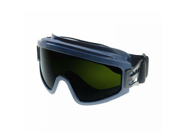 Очки с непрямой вентиляцией с панорамным защитным стеклом-светофильтром тёмно-зеленого цвета из поликарбоната (РС StrongGlass) с влагостойким, двусторонним суперпрочным, твердым и одновременно незапотевающим покрытием (без потери свойств от времени). Обеспечивают защиту глаз от высокоскоростных летящих частиц со среднеэнергетическим ударом, абразива, капель жидкостей (в т.ч. химических растворов), УФ-излучения, повышенная защита от искр и брызг расплавленного металла и высокой температуры.