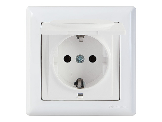 Розетка 1-ая (скрытая, с/з, с крышкой) белая, DARIA, MUTLUSAN