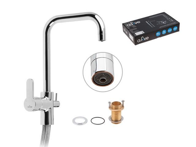 Строгие линии, надежные комплектующие, эталонное качество сборки — это то, что отличает смесители A-five Fonte от аналогов. Данные смесители включают в себя все, что необходимо на современной кухне: встроенный кран для питьевой воды позволяет избавиться от необходимости монтировать дополнительное оборудование, надежный картридж позволяет не беспокоиться за работоспособность изделия на многие года вперед, а высококачественное хромое покрытие идеально впишется в любой интерьер.