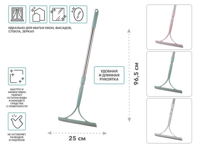 Стеклоочиститель-водосгон используется для мытья окон, фасадов, стекла и зеркал. Быстро и эффективно убирает остатки воды и моющего средства с поверхности. Отлично справляется с загрязнениями и пылью. При использовании не оставляет разводов и подтёков.