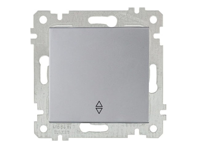 Выключатель проходной 1-клав. (скрытый, без рамки, пруж. зажим) серебро, RITA, MUTLUSAN