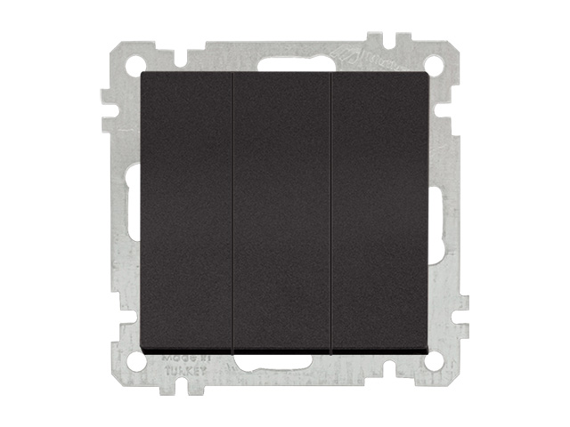 Выключатель 3-клав. (скрытый, без рамки, пруж. зажим) черный, DARIA, MUTLUSAN