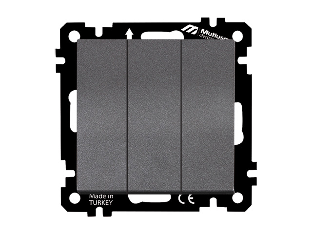 Выключатель 3-клав. (скрытый, без рамки, пруж. зажим) дымчатый, DARIA, MUTLUSAN