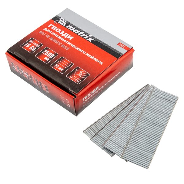 Гвозди для пневматического нейлера 16GA, сечение 1.6 х 1.4, длина 25 мм, 2500 шт Matrix
