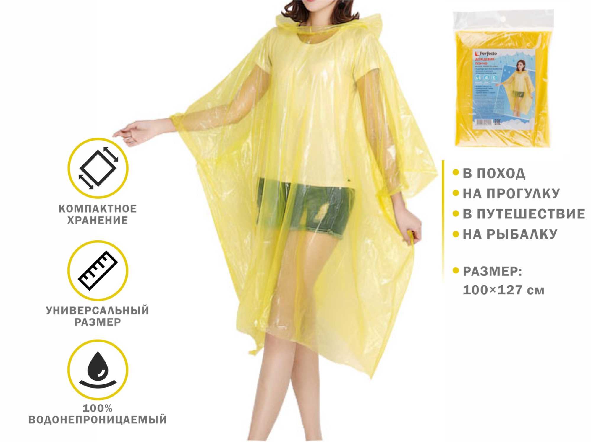 Дождевик-пончо, желтый, PERFECTO LINEA