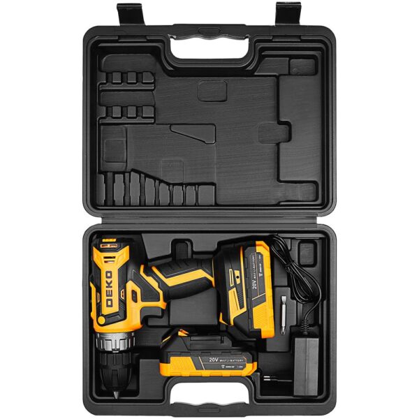 • Аккумуляторная дрель-шуруповерт DEKO ZKCD20V в кейсе, 20В, 2х1.5Ач используется при строительных, слесарно-монтажных работах.