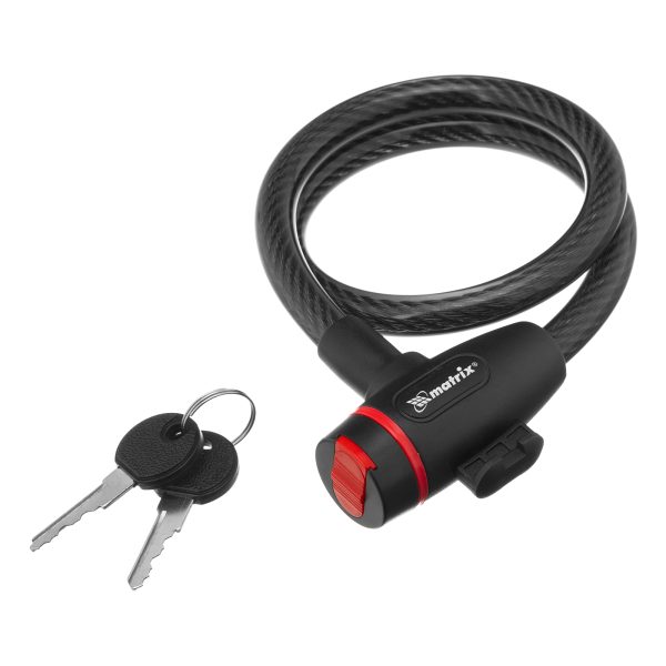 Универсальный тросовый замок Matrix 91834 размером 12 х 650 мм позволяет обезопасить имущество от кражи. С его помощью можно пристегнуть велосипед, мопед, коляску и другие транспортные средства к неподвижной опоре, а также защитить помещение от взлома.