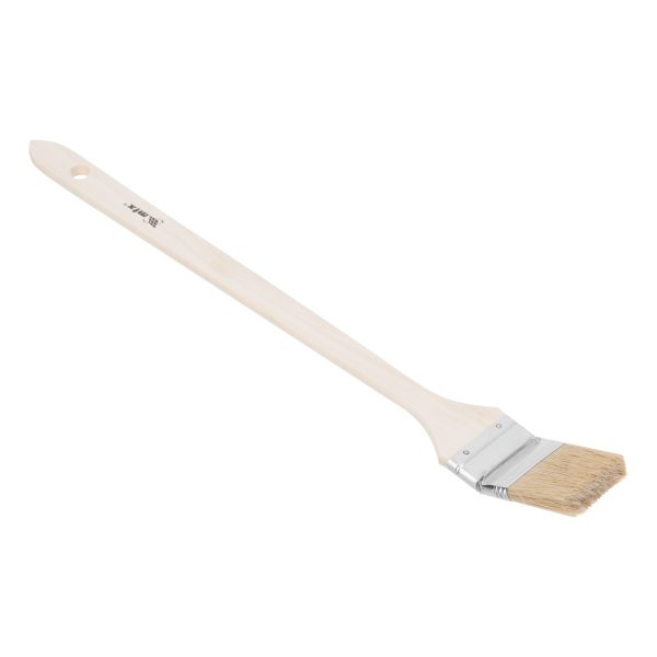 Радиаторная кисть MTX 83846 шириной 2″, с натуральной щетиной и деревянной ручкой, используется для окрашивания радиаторов водяного отопления, металлических проволочных конструкций, труб, а также углов и стыков стен. Решение этих задач облегчает удлиненная ручка изогнутой формы. Натуральная щетина устойчива к агрессивным средам, поэтому кисть может применяться с эмалями и масляными красками.