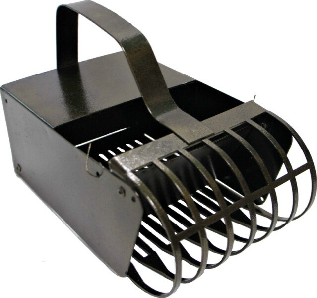 Комбайн для сбора ягод — устройство, способное существенно упростить сбор ягод. Плодосъемник имеет объем 1.2 литра, а также заслонку для предотвращения просыпания собранных ягод. Корпус металлический.