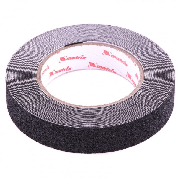 Клейкая противоскользящая лента Matrix 88706 черного цвета, шириной 25 мм и длиной 10 м, позволяет снизить риск получения травм на лестницах, кафеле и других скользких поверхностях. Пригодится в помещениях с большой посещаемостью: общественных зданиях, многоквартирных домах, бассейнах и др. Благодаря прочному клеевому составу лента крепится на любые поверхности: ламинат, кафель и т. д. Ленту следует монтировать при температуре выше +12 ? на предварительно очищенную сухую поверхность.