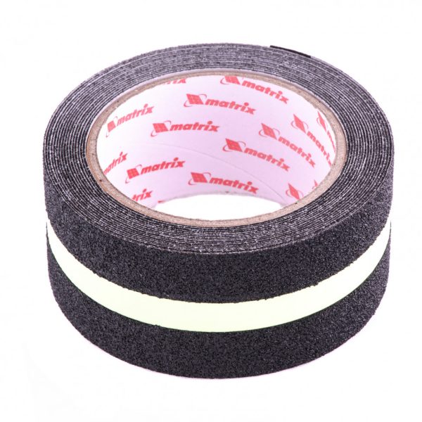 Клейкая противоскользящая лента Matrix 88719 c фотолюминесцентной полосой, размером 50 мм х 5 м, позволяет безопасно передвигаться по скользким поверхностям: лестницам, кафелю и т.д. Она снижает риск получения травм, поэтому пригодится в местах с большой проходимостью, например, в магазине или многоквартирном доме. Чтобы лента долго сохраняла высокие адгезионные свойства, следует производить монтаж при температуре выше +12 °C на сухую и очищенную поверхность.