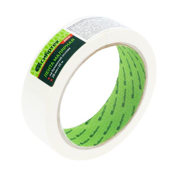 Малярная лента Сибртех 88830 шириной 28 мм и длиной намотки 25 м, на бумажной основе, пригодится для внутренних малярных работ с ЛКМ любого типа, а также для склеивания книг, альбомов и других бумажных предметов. Повышает качество окрашивания, т.к. предотвращает растекание краски, при этом надежно клеится и без труда удаляется, не оставляя следов на поверхностях.