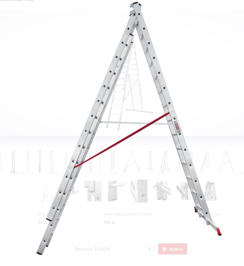Будьте первым, кто оставил отзыв на “Лестница алюм. 3-х секц. 358/926/380см 3х14 ступ., 23кг NV3230 Новая Высота”