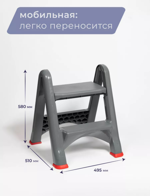 функциональная стремянка с 2 ступеньками из пластика. Этот полезный и практичный помощник станет незаменимым в вашем доме, гараже, на даче или в офисе.