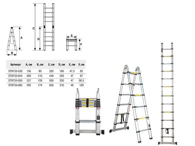 Модификация (высота, см): двусторонняя стремянка (209 см),