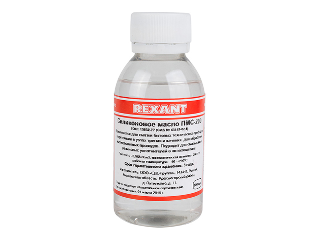 ПолиМетилСилоксановая жидкость ПМС-200 (ГОСТ 13032-77) REXANT – бесцветная прозрачная химически инертная и коррозионностойкая силиконовая жидкость без запаха.