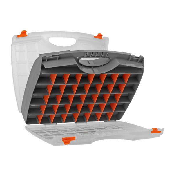 Двухсторонний органайзер из пластика Stels 90710 размером 425 х 330 х 85 мм пригодится в хозяйстве и мастерской для хранения крепежных элементов, принадлежностей для рукоделия, снастей и т.д. Он обеспечивает быстрый доступ к предметам, не допуская их перемешивания и утери.