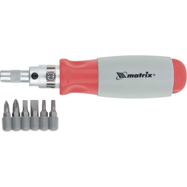 Отвертка реверсивная, силовой элемент под ключ, набор бит, CrV, 6 шт Matrix
