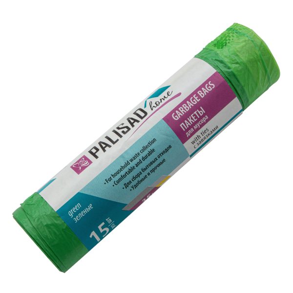 Зеленые пакеты для мусора с завязками Palisad Home 927175 объемом 35 л, 15 шт. в упаковке, рассчитаны на использование в квартире и офисе. Также пригодятся для сбора легких отходов во время уборки территории. Пакеты предотвращают загрязнение ведра, а также облегчают транспортировку и утилизацию мусора.