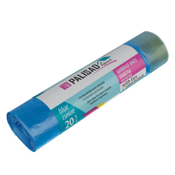 Пакеты для мусора с завязками 60 л x 20 шт., синие, Home Palisad