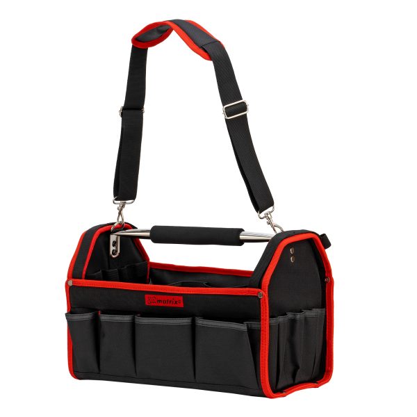 Каркасная переноска Matrix 90257 размером 415 х 230 х 260 мм удобна для перемещения и хранения инструментов. Имеет прочный каркас и весит 1,35 кг, ее легко переносить благодаря регулируемому плечевому ремню. В удобных карманах можно расположить все необходимые инструменты. Переноска пригодится дома, в гараже или в поездке.