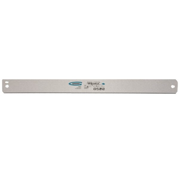 Пильное полотно Gross «PIRANHA» 22867 длиной 600 мм, с каленым зубом с 2D-заточкой, 14 TPI — режущий элемент для прецизионного стусла, применяемый для распила под углом заготовок из дерева, мягкого металла и пластика. Мелкие зубья с шагом 14 TPI позволяют получить точный и чистый рез. Полотно используется для пиления плинтусов, реек, дверных наличников и других деталей.