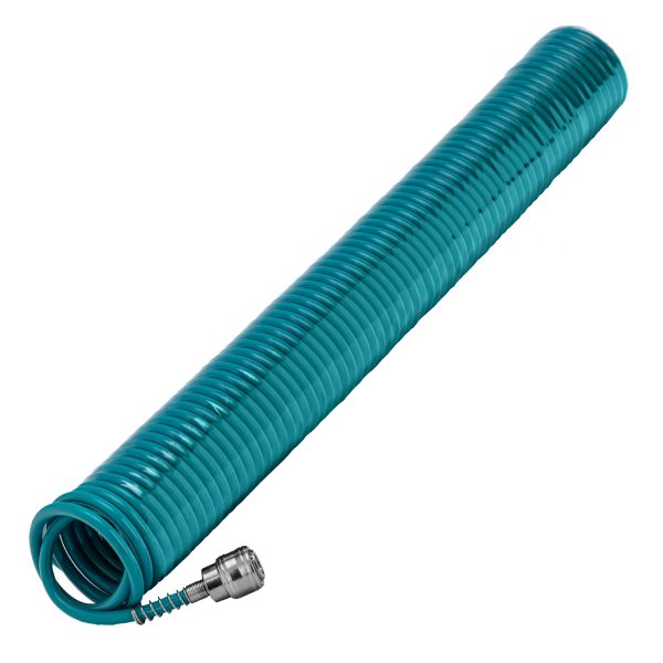 Профессиональный полиуретановый спиральный шланг Stels 57009 из сырья BASF, длиной 15 м, с быстросъемными соединениями, предназначен для подключения пневматического оборудования. Благодаря увеличенной толщине рукав выдерживает давление до 24 бар, поэтому подходит для мощного компрессорного оборудования. Используется в строительстве и на производственных предприятиях.