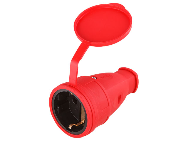 JP7602-04 Вилка (с/з, 16А, 250В) каучук, красная Юпитер,