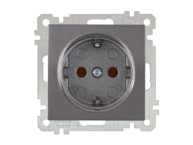Розетка 1-ая (скр, б/рамки, с/з, шторки) дымчатая, CANDELA (DARIA), MUTLUSAN
