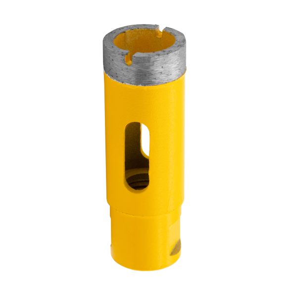 Алмазное сверло Denzel 72681 диаметром 25 мм, с резьбой М14, предназначено для «мокрого» сверления по керамограниту, мрамору, стеклу и керамической плитке. Позволяет получать ровные отверстия без сколов, используется для проведения ремонтных и отделочных работ. Сверло (коронку) устанавливают на вал углошлифовальной машины, благодаря чему скорость сверления увеличивается в несколько раз по сравнению с дрелью или шуруповертом. Применение водяного охлаждения повышает срок службы оснастки. Чтобы точно позиционировать сверло при сверлении дрелью, рекомендуется использовать кондуктор (арт. 72830).