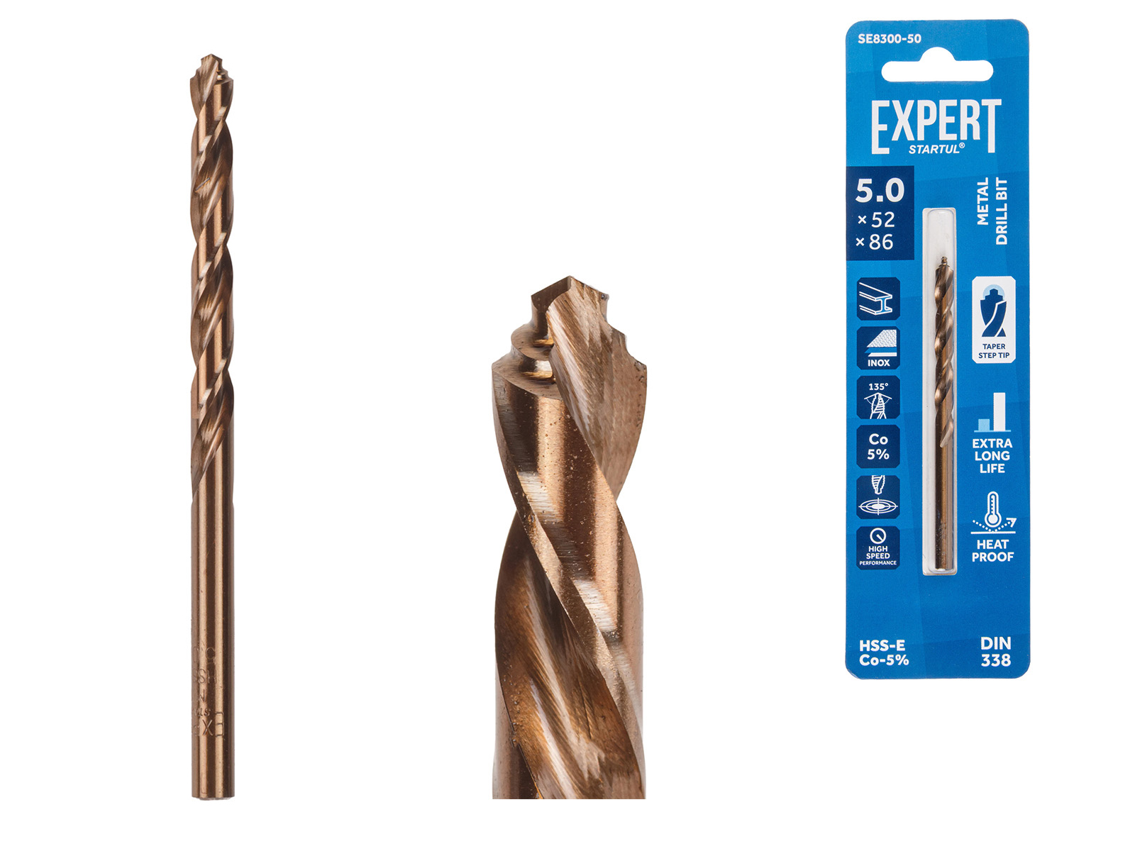 Сверло по металлу ц/х 5.0х52х86 мм HSS-Co EXPERT STARTUL