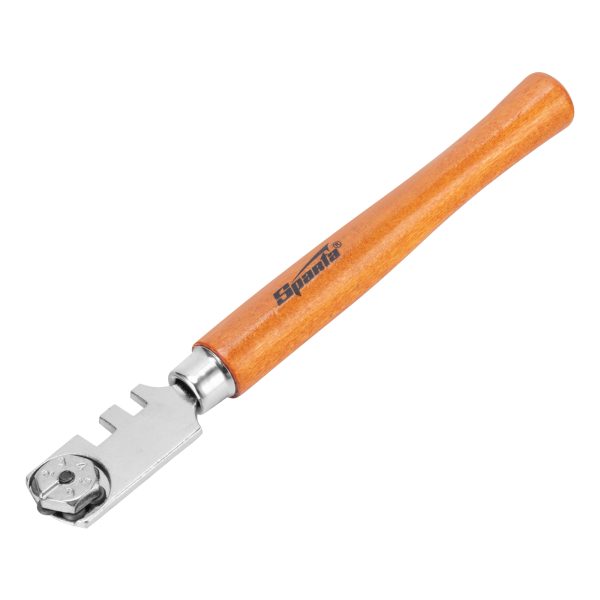 Шестироликовый стеклорез Sparta 872205 с деревянной рукояткой служит для резки стекла толщиной до 6 мм и подходит для бытового использования. С его помощью можно изготовить столешницу, полочку, заменить стекло в аквариуме или двери. Блок с 6 роликами позволяет быстро установить новый режущий элемент взамен изношенного — достаточно ослабить винт и повернуть головку. На головке имеются пазы шириной 4 и 5 мм для отламывания кромки стекла, увеличивающие функциональность стеклореза.