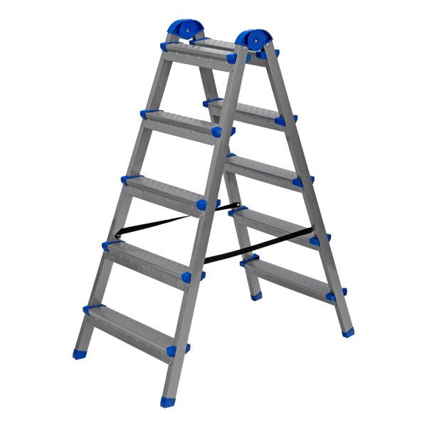 Стремянка двухсторонняя Сибртех 97985 со стальным профилем и 5 стальными ступенями помогает решать бытовые задачи на высоте, превышающей человеческий рост. Ее используют, чтобы доставать предметы с антресолей или шкафов, проводить уборку, менять лампочки, вешать полки или картины. Работать с электроинструментом на ней не рекомендуется. Стремянка с пластиковым складным механизмом повышенной стабильности и широким основанием очень устойчива на ровной поверхности. Площадка находится на высоте 110 см от опорной поверхности, рабочая высота стремянки составляет 310 см (при среднем росте пользователя 170 см).
