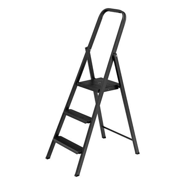 Стремянка компактная стальная Сибртех 97943 с 3 ступенями служит для проведения работ на высоте, превышающей человеческий рост. Стальные профилированные рама и ступени рассчитаны на нагрузку до 150 кг. Площадка находится на высоте 64 см от опорной поверхности, рабочая высота стремянки составляет 264 см (при среднем росте пользователя 170 см). Использовать стремянку можно дома, на даче или в гараже, а также во время строительства и ремонта.