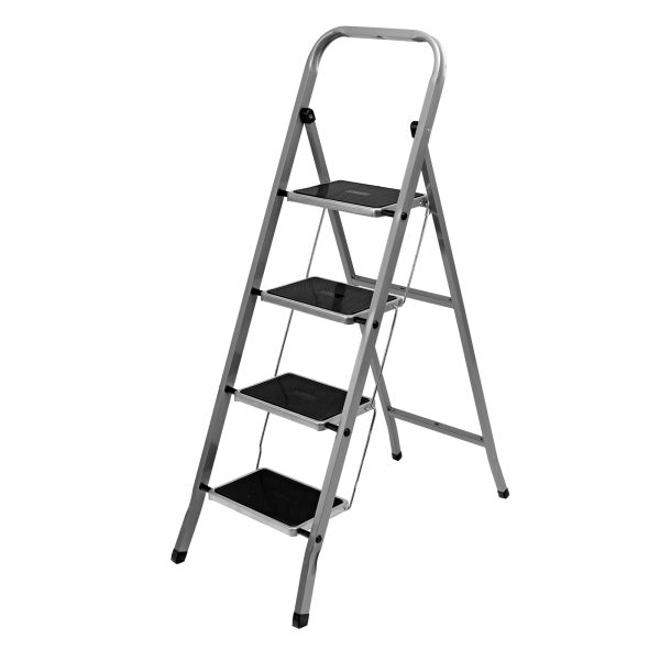 Стремянка стальная Сибртех 97869 имеет 4 ступени с полимерными ковриками и упрощает доступ к предметам и поверхностям, расположенным выше человеческого роста. Лестница легко раскладывается и складывается, а широкое основание придает ей устойчивость. Площадка находится на высоте 92 см от опорной поверхности, рабочая высота стремянки составляет 292 см (при среднем росте пользователя 170 см). Пригодится во время строительства и ремонта, а также будет полезна в быту.