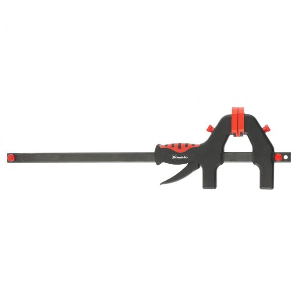 Универсальная F-образная быстрозажимная струбцина Matrix 20545, 450 х 765 х 90 мм, в пластиковом корпусе, используется в столярном деле. Позволяет быстро фиксировать заготовки с целью их соединения или обработки — склеивания, сверления, шлифовки, пиления и других видов работ. Подвижная губка перемещается вдоль штанги при помощи пластинчатого механизма, а фиксатор препятствует разжиманию струбцины. Массивная конструкция обеспечивает надежность инструмента.