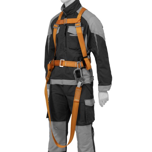 - Надежность — большой монтажный карабин, 2 металлических D-образных кольца на поясе и 1 на спине гарантированно удерживают пользователя.