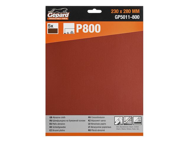 Шлифлист 230х280мм Р800 бум.осн. 5шт. GEPARD (GP5011-800)