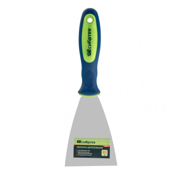Шпательная лопатка из нержавеющей стали Сибртех 85524 шириной 80 мм, с двухкомпонентной рукояткой, облегчает проведение ремонтно-отделочных работ. Позволяет наносить и разравнивать строительные смеси, шпаклевать швы, заполнять трещины, удалять старые обои и выполнять работы в труднодоступных местах.