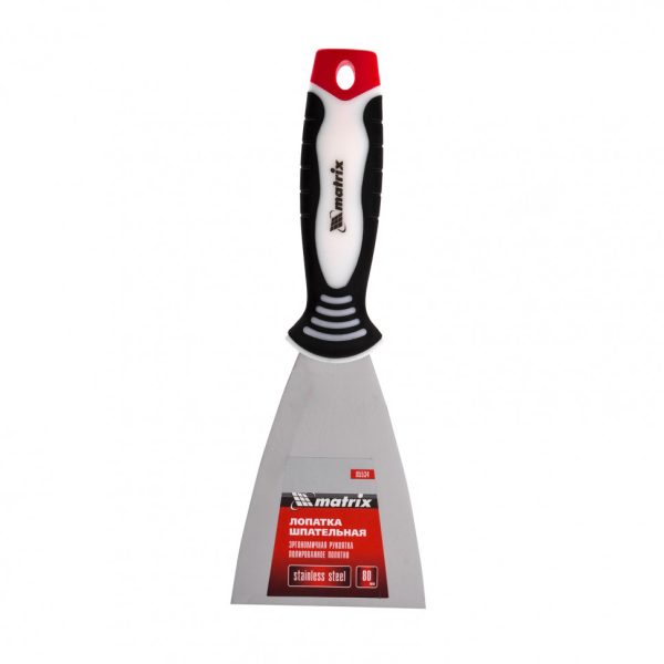 Шпательная лопатка Matrix 85534 из нержавеющей стали, с полотном шириной 80 мм и 3-компонентной ручкой, подходит для бытового и профессионального применения. Инструмент позволяет замешивать, наносить и разравнивать штукатурку и другие строительные растворы, заполнять швы, заделывать трещины и выполнять иные отделочные работы.